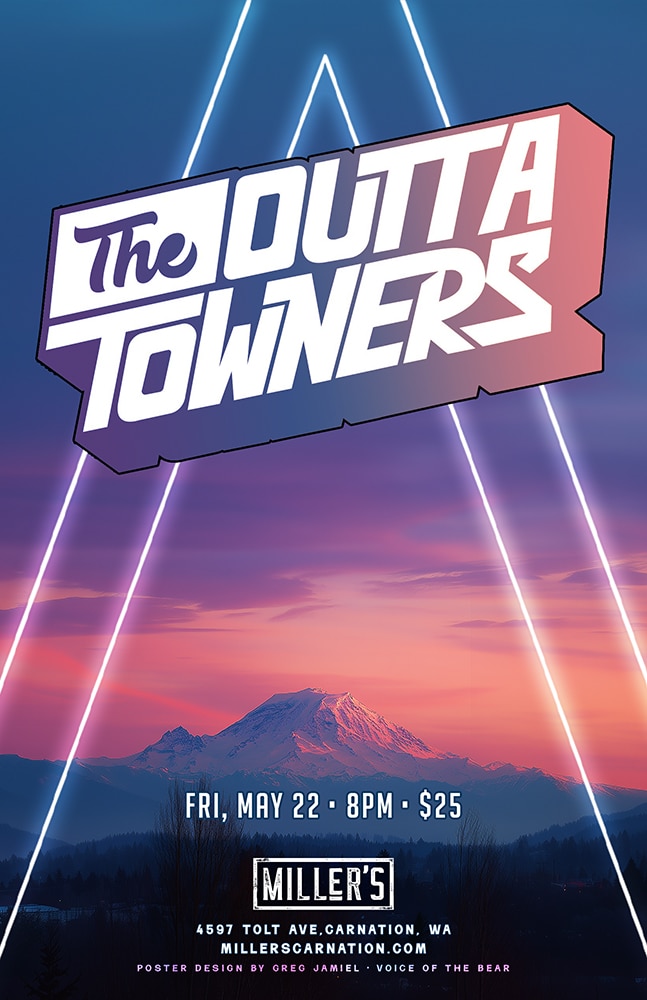 Millers - A Gathering Place 4597 Tolt Avenue, Carnation, WA, United States“The OuttaTowners are a Seattle-area alternative rock collective known for raw, dynamic live performances and groove-driven musical interplay. Writing and performing their own original material, the band draws inspiration from…